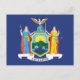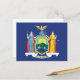 Show your proud New York state pride with this iconic New York State Flag postcard This distinguished design features a unique buff-colored field, historically linked to the uniforms of the Continental Army. At its center is the detailed Great Seal of New York, majestically displaying the figures of Liberty and Justice, symbolizing the state's foundational principles. The central shield showcases a vibrant landscape with a ship and sloop on a river, representing its vital commerce and waterways. Above, an American eagle perches on a globe, while below, the bold motto "EXCELSIOR" (Ever Upward) inspires ambition.