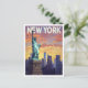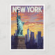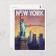 New York Travel Poster: Statue of Liberty Sunset Vykort