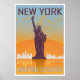 New York vintage affisch i orange och blå texturerad bakgrund med skylten vit