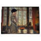 Den här designen har originalteckningar från den amerikanska imponerande målaren Childe Hassam (1859-1935). Det skildrar en vacker ung kvinna i elegantens matrum i en vintage i New York City. Dam bär en gyllene klänning och hennes hår är svart. Gardinerna dras, så att byggnad och stadens gator kan ses genom fönstret. Det finns en fruktskål på bord bakom kvinnan. Den ursprungliga teckningen målades av Childe Hassam 1919.