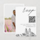 Newark bröllop klassiskt minimalistiskt bröllop OSA-kort med skript med personlig med information och en QR-kod. Ändra QR-kodlänken enkelt i fält för anpassning utan att behöva skapa och överföra en ny separat. Ange Zazzle-designen verktyg för ytterligare anpassning, t.ex. textplacering eller för att ta bort fotot på baksidan. Se till att jämföra de olika pappra typerna för att välja struktur som du vill använda som favorit.