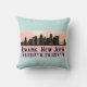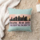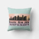Snyggt dekorativ kudde har Newark NJ:s stadskyline silhouette med vattenfärgen stänk och latitud och longitud karta koordinaterna