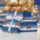 Newfoundland hund i snö med julhatt och julklappar är en julklapp i perfekt för någon som kärlek i hund aveln.
