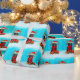 Nystiftland som i snö njuter av julklappar med jultomten hatt och med christmas ljus är en perfekt gåva till någon som kärlek i hund aveln i
