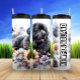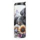En stor Newfoundland-hund med ett serenuttryck är kapslad bland en lugnande arrangemang av solblommor i muterade gulter och krämer, tillsammans med mjuk lila och vita blommar. Konsten fångar rasens mjuka, gigantiska natur inom en fredlig blommigt.