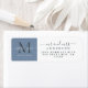 Chic, modern och enkel returadressetikett för det nylånade paret innehåller texten som Calligraphy och Mrs in elegant, med ett svart monogram på en vintage blå bakgrund. Lägg bara till namn, monogram och adress. Enbart designad för dig med Lycklig Dolphin Studio!