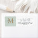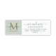 Chic, modern och enkel returadressetikett för det nylånade paret innehåller texten som manusgrafi med elegant, med ett guld monogram på bakgrunden för en pastellgrönt. Lägg bara till namn, monogram och adress. Enbart designad för dig med Lycklig Dolphin Studio!