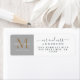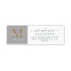 Chic, modern och enkel returadressetikett för det nylånade paret innehåller texten som manusgrafi med elegant, med guld monogram på grått-bakgrund. Lägg bara till namn, monogram och adress. Enbart designad för dig med Lycklig Dolphin Studio!
