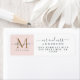 Chic, modern och enkel returadressetikett för det nylånade paret innehåller texten som manusgrafi med elegant, med guld monogram på bakgrunden för pastellrosa. Lägg bara till namn, monogram och adress. Enbart designad för dig med Lycklig Dolphin Studio!