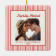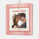 För paret som tillbringar sin första jul tillsammans som ett gift par som förtjänar att uppmärksamma denna speciella tid med en underbar Julgran-prydnad. Denna prydnad i träd kan vara personlig med ett speciellt pars foto, och ditt gifta namn och år på framsidan. Texten på baksidan kan behållas som den är eller redigeras för text med motsvarande längd. Utformningen har en modern vintage som vrider med candy cane rand och söt röd båge på ryggen. Köp med valfri påse eller använda din egen presentförpackning för lycklig-paret, men i vilket fall som helst kommer den här nyltade träd-prydnaden säkert att ge ansikte ett leende till de söta nylbärarna.