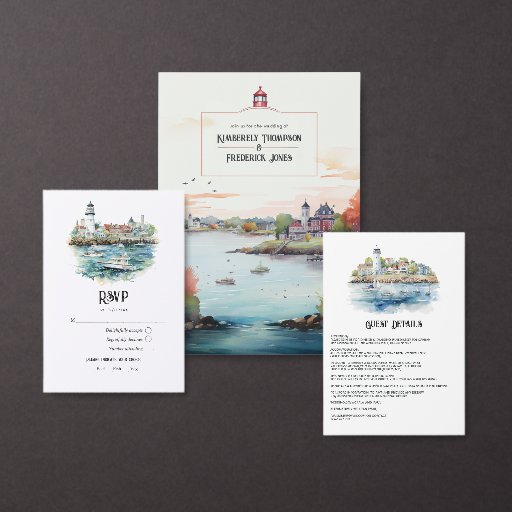 Nyport, bröllop-menykort med Rhode island-temat.