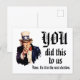 Farbror Sam pekar ut alla som röstar för vedergällning snarare än glädje eller som tyckte att Biden var för knäpp och att Kamila inte gjort ”tillräckligt” för att förtjäna deras röst. Även alla valda tjänstemän som vägrat stå upp för demokratin. Ja, det var ni som hamnade oss i denna röra. Fixa det nu under nästa val eller de kommande.
