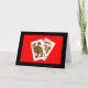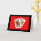 Ett fotografi av en Klöver Dam och en Hjärters Kung som tittar på varandra är mitt "Ni Var Ämnade Att Vara Tillsammans - Det Står I Kort"-jubileumskorts mittpunkt. Kortena sticker ut fint mot en ljusröd bakgrund med en svart ram.