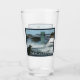 En digital målning av bron i internationell och observationsytan torn vid Niagara Falls i New York. Med det häftiga vattenfallet som snabbt rinner ner i floden nedanför skickar det vatten uppåt i luft. En svart nattbjörn är i grund hörnet bredvid den vita bokstaven "Niagara Falls". Längst upp på målningen med vita bokstäver står "Kanada" och "New York", som visar vilken sida av George som är vem. Målningen har ett mörk blått gräns. Upphovsrätt ©2023 Kimberly J Tilley.