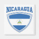 Nicaraguas flagga insprutas i en sköld som har blå/vita konturer runt flagga. Land namn läggs till ovanför bilden.