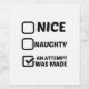 NICE NAUGHTY ETT FÖRSÖK GJORDES VINFLASKA ETIKETT
