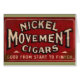 Nickel Movement Cigars är en reklam för vintage från 1900-talet. En djup röd bakgrund med ord Nickel Movement Cigars i mitten.