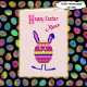 En söt Påskhare för din dotter i form av ett Påskägg. Äggen har dekorerats med fläckar, rand och zigzagar i rosa, blått och gult, och bakgrunden är också rosa. Budskapet inuti kan anpassas och lyder: "En glad påsk bunny är här för att önska en speciell dotter mycket Glad påsk!"
