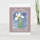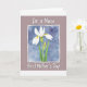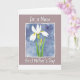 Denna kortlek är designad med en lugn blomster scen och centrerar kring en stiliserad vit iris-liknande blomma med mjuka, flödande kronblad och en solig gul mitt som känns som en försiktig nick av tillgivenhet ❤️. En liten knopp bredvid antyder en växande relation, som ett tyst löfte som delas mellan nära och kära. Blomman reser sig på rika gröna stjälkar och blad, mot en drömlik tvätt av blå och lavendel som påminner om en fridfull himmel. En ojämn vit ram omger illustrationen som ett litet fönster och drar blicken inåt mot den ömma mittpunkten. Utanför ramen sitter en dämpad lila-brun bakgrund som får de bleka kronbladen och svala färgerna att sticka ut. Överst visas orden “for a Niece” i rundade vita bokstäver, jämnt fördelade ovanför den inramade bilden. Längst ner står “First Mother’s Day” i samma vita bokstäver, centrerat