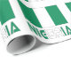 Det nigerianska Flagga är tre lodrät rand. Mittpunkten är vit medan överkanten och grund rand är grönt. Under flagga ligger ord NIGERIA i flagga färg. Ge pappert för att ditt arv.