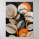 Koncentriska blommor på en stjärnklar natt erbjuder ett djärvt abstrakt botaniskt konstverk med stora cirkulära blomhuvuden byggda av lager av linjer, prickar och texturerade segment i varma guld-, orange-, vita och svarta nyanser. Långa mönstrade blad reser sig mot ett tätt fält av vita prickar på djup svart, vilket skapar dramatisk kontrast och en modern, dekorativ estetik. Designad i ett flexibelt format med 4:5 proportion, ger denna högupplösta digitala nedladdning lysande konstnärskap och hantverksskicklighet till alla utrymmen, perfekt för inramning, som gåva eller för att förhöja din heminredning med levande trädgårdselegans.