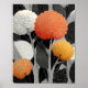 Detta livfulla blommönster på djärkt svart presenterar en livlig botanisk illustration med stiliserade blommor i varma vita, orange och gula nyanser, omgivna av intrikat mönstrade svart-vita blad. Den höga kontrastpaletten och detaljerade linjärarbetet skapar en modern, grafisk estetik som känns både konstnärlig och samtida. Designad i ett flexibelt format med 4:5 proportion, ger denna högupplösta digitala nedladdning lysande konstnärskap och hantverksskicklighet till alla utrymmen, perfekt för inramning, som present eller för att förhöja din heminredning med livfull trädgårdselegans.