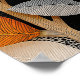 Denna strukturerade geometriska blomning presenterar en modern botanisk illustration med stora cirkulära blomsterhuvuden byggda av invecklade prickmönster i varma vita, orange och svarta nyanser. Avlånga blad i orange, grått och vitt ger skiktad struktur, medan den mörka bakgrunden förstärker den djärva, dekorativa geometrin. En slående sammansmältning av organiska former och modernt mönsterdesign. Designad i ett flexibelt format med 4:5 proportion, ger denna högupplösta digitala nedladdning lysande konstnärskap och hantverksskicklighet till alla utrymmen, perfekt för inramning, som present eller för att förhöja din heminredning med livfull trädgårdselegans.