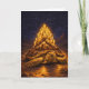 Watercolor surreal drawing of a Sulcata Tortoise with a birthday cake mountain shell in the desert at night with starry skies. Happy birthday text with a champagne bottle inside the card. Perfect birthday card for surreal art and turtle lovers. Model: Tortellini.