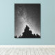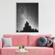 Det här svarta och vita fotot har en natt himlar över skogen.