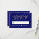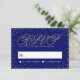 Små, glittrande guld-stjärnor gnistra i konfektmoln runt kant på detta vackra blått svarskort, med ett guld-glitter-effektskript som lyder "OSA". Finare, chic och förtjusning på gång. Perfekt för ett nattvarigt bröllop under stjärnorna. Originalteckningar av Colleen Michele. Observera att det inte finns någon verklig effekt på stjärnorna och manuset i guld eller guld, och att inget glitter, guld löv eller metalliskt bläck kommer att användas i denna inbjudan.