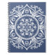Den här vita mandala sitter på marinbakgrunden. Färg är intelligent och lugn. Del av Rosenn Mandala Collection.