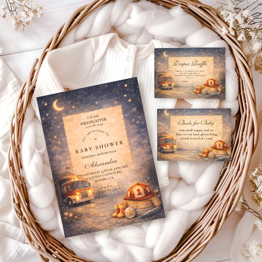 Night Sky Little Firefighter Baby Shower Inbjudningar