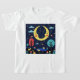 The image depicts a colorful illustration of a night sky with a moon shaped like two faces, stars, clouds, birds, trees, and a rural landscape.