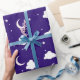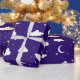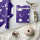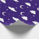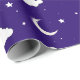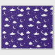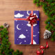 Night sky wrapping paper with dark blue sky, clouds, moon and stars.
