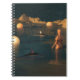 A surreal nocturnal scene where glowing orbs float across a calm alien sea under a star-filled sky. A solitary human figure stands in shallow water, surrounded by silent movement beneath the surface, blurring the line between curiosity and unease. This artwork evokes mystery, introspection, and quiet tension, making it a powerful statement piece for modern interiors, sci-fi inspired spaces, and contemporary art collections.