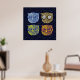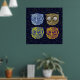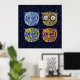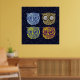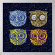 Fyra bilder av uggla i ett stjärnt blå himmel för att dekorera dina hemväggar
