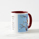 En mugg med en vacker bild av en näktergal som sitter i ett träd fullt av blommor. Bilden och texten kan anpassas. Originalkonst av W.B.