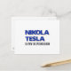 Nikola Tesla är min superhjälte. Textgrafik i svart och blå med vit blixt.