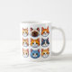 Nio katt ansikte arrangerade vågrätt, tre på varje rad. De här söta, olika kattens ansikte från olika tävling finns i stil i färgstarka tecknader för barn. Bakgrunden är vit. Börja din dag med ett leende med det här vackra kaffe koppar som kommer att göra din morgonrutin ljusare! Allt från snabb design till snyggt mönster kommer mugg säkert att tillföra lite roligt till kaffetiden. Vilken är din favorit? ☕️ ✨