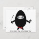 Ninja Egg kommer inte att tas över lätt! Han kommer att kämpa tills du blir väl slagen och kramad! Sprid ut meddelandet med dina vänner och familj med det här quirky-vykortet designat med Contemporary Artist Len Davis.