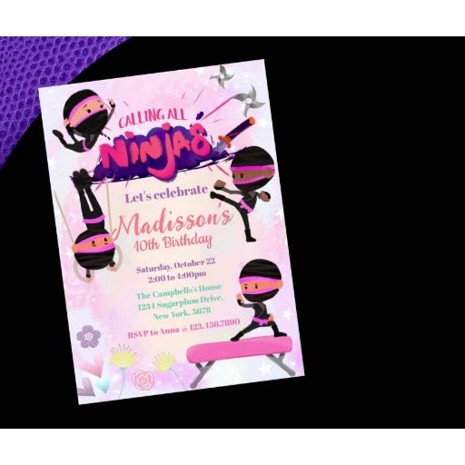 Ninja Girl Birthday Martial Arts Inbjudningar