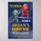 Ljus och färgrik Ninja Warrior födelsedagsfest poster, ändra texten till vad du vill när du beställer.