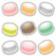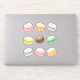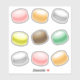 Nio söta och delikata makaroner i färg rosa, gult, grönt, vit, orange och brun.