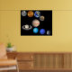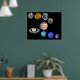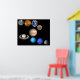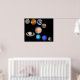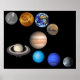 Nio planeter i solsystemet. Kvicksilver, Venus, Jorden, Mars, Jupiter, Saturnus, Neptune och Pluto.