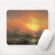Oljemålning av Ivan Aivazovsky, visning överlevandearna av ett skeppsbrottinnehav på till ett stort biet av trä, i buse bevattnar. Platssärdragen stor blått- och gröntvågar, med en ljus orange solnedgång i bakgrunden.