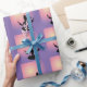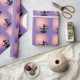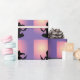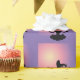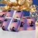 Trendig och uppfriskande silhuett av en kvinna som mediterar på lila till gultens bakgrund.