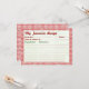 Röda checkar och små positioner.. Det finns massor av Niftio 50's charm med de här receptkorten. De här korten är perfekten som infogas i din matchande femtio-inbjudan. Få vänner att fylla ut sitt favoritrecept och ta med det till party till .