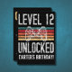 Letar du efter den perfekta inbjudan för en spelare som fyller 12? Denna Nivå 12 Upplåst-design är för dig. Perfekt födelsedagsfirande för en spelare med denna roliga grafik för upplåsta prestationer.
