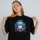 Här är ytterligare en animerad och spelinspirerad t-shirt-design med ett cyberpunk-stil-animeringstecken med ljusnande neon ögon, omgiven av pixelbaserade glanseffekter och ett futuristiska-spelheadset, med frasen "Nivå upp" 🎮 ✨ 🕹️.