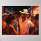 Målning av en stilig kubansk man som har ett roligt samtal med en vacker kubansk kvinna på en populär ambulerande marknad i Miami. Det här är ytterligare 100 % originaldesign för Snughamster.